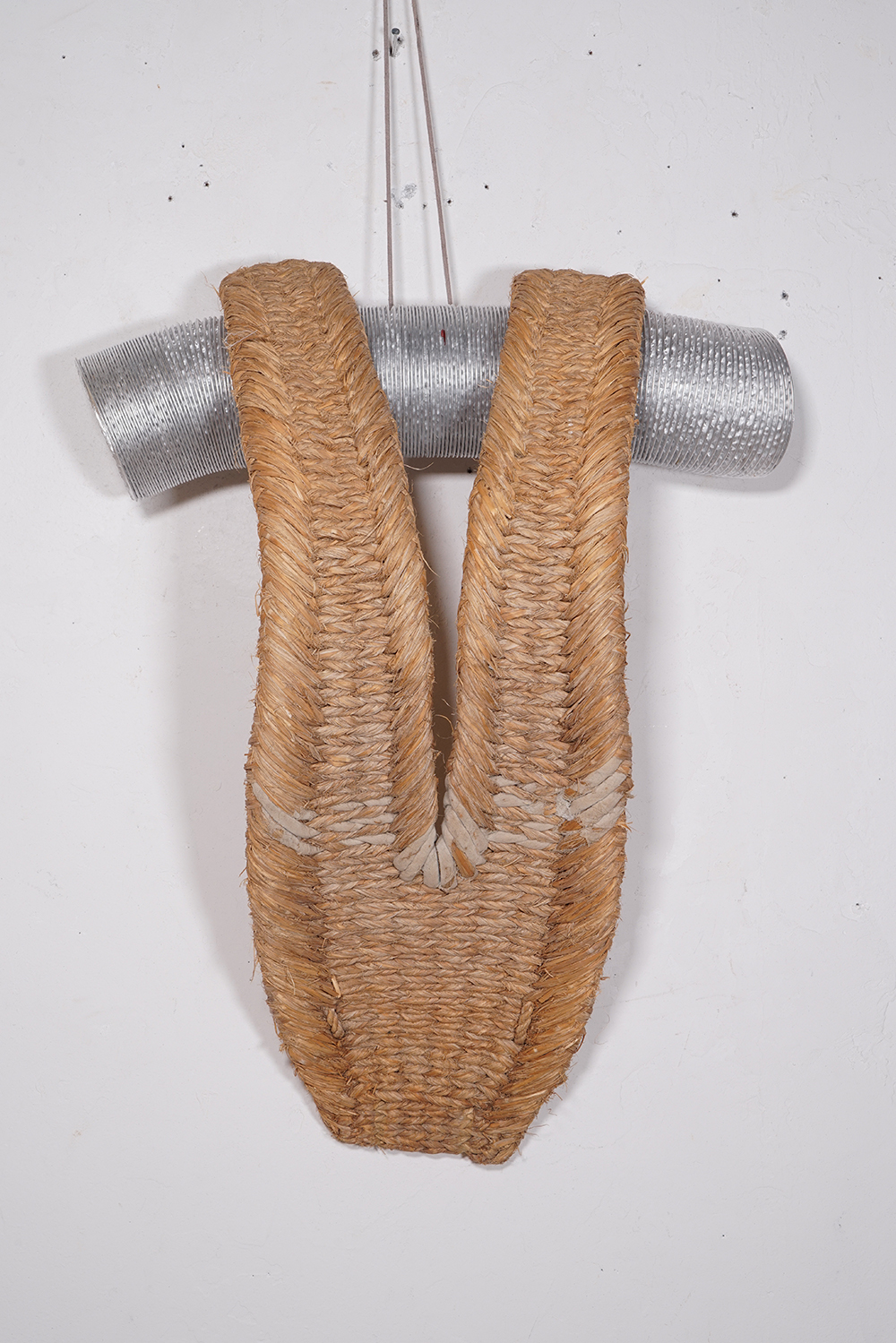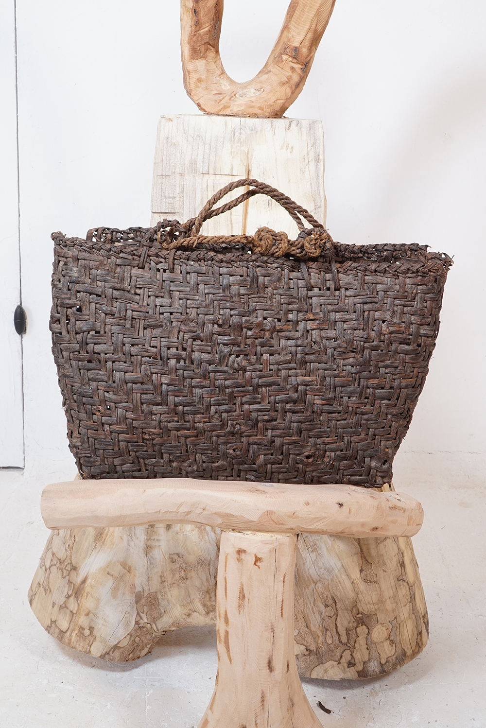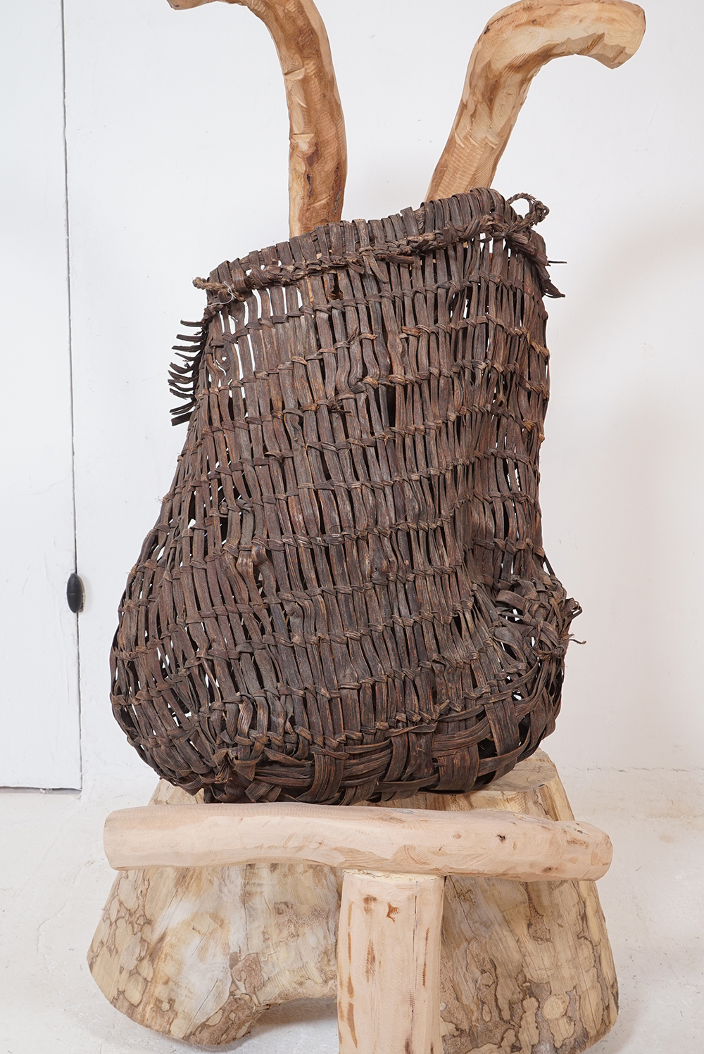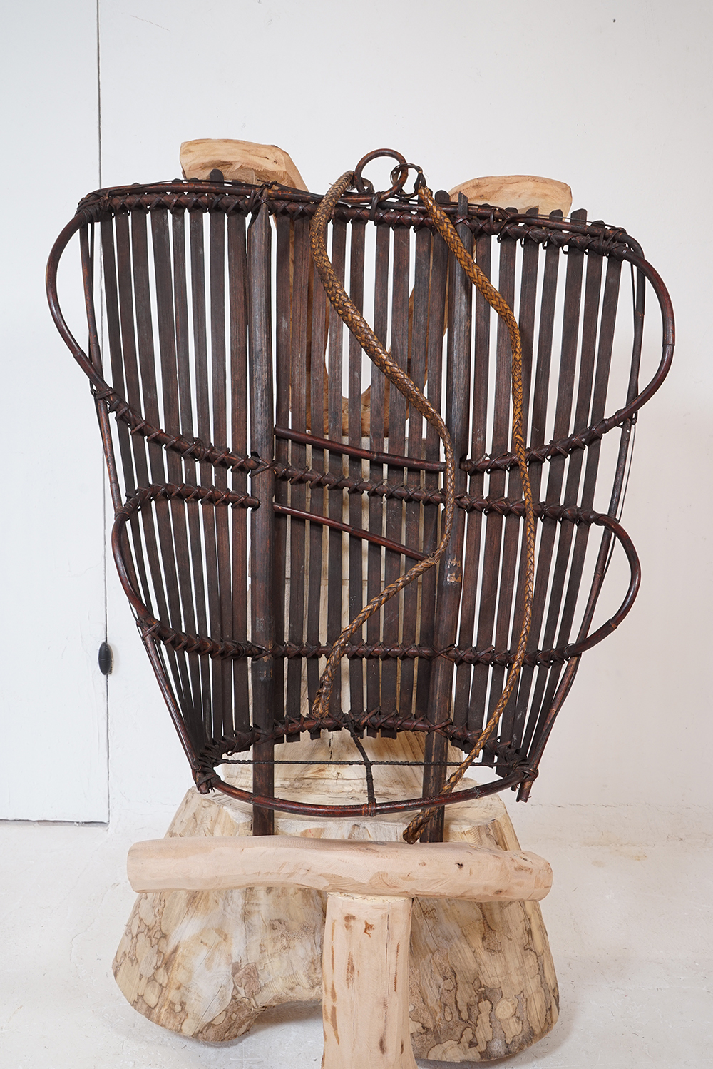 蓑もばんどりもどう見てもライオンキングの様に見え、日本的という表現からは遠い存在に見えてなりません。 私の勝手な想像ですが、民族大移動の時期に、アフリカやオセアニア、インドネシアあたりから、記憶としての文化が運び込まれたり、種子や花粉が飛んでくる様に列島にもたらされたのではと思っております。 展示は古い編み籠なども加え約五十点ほどになります。ご高覧いただければ幸いに存じます。
