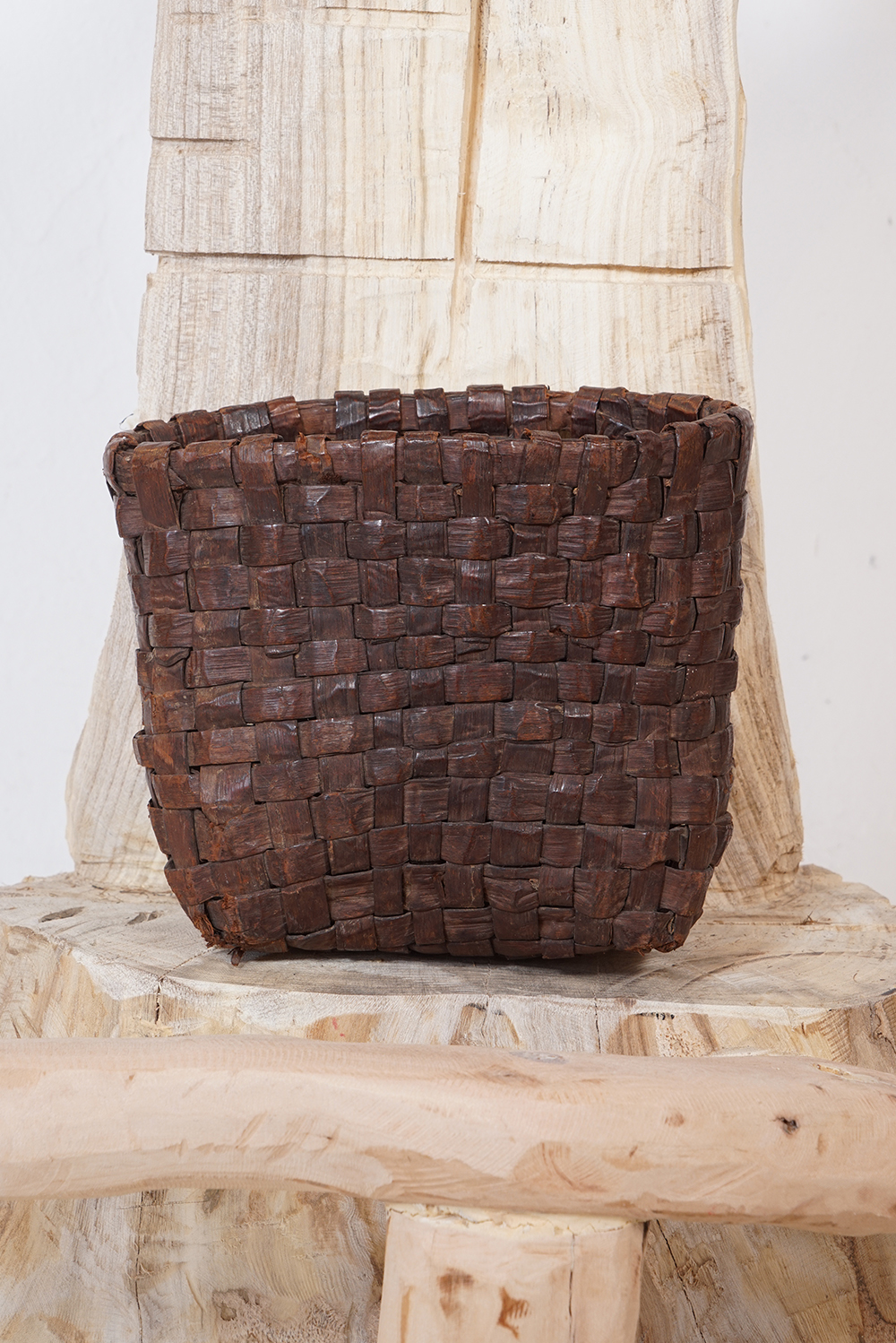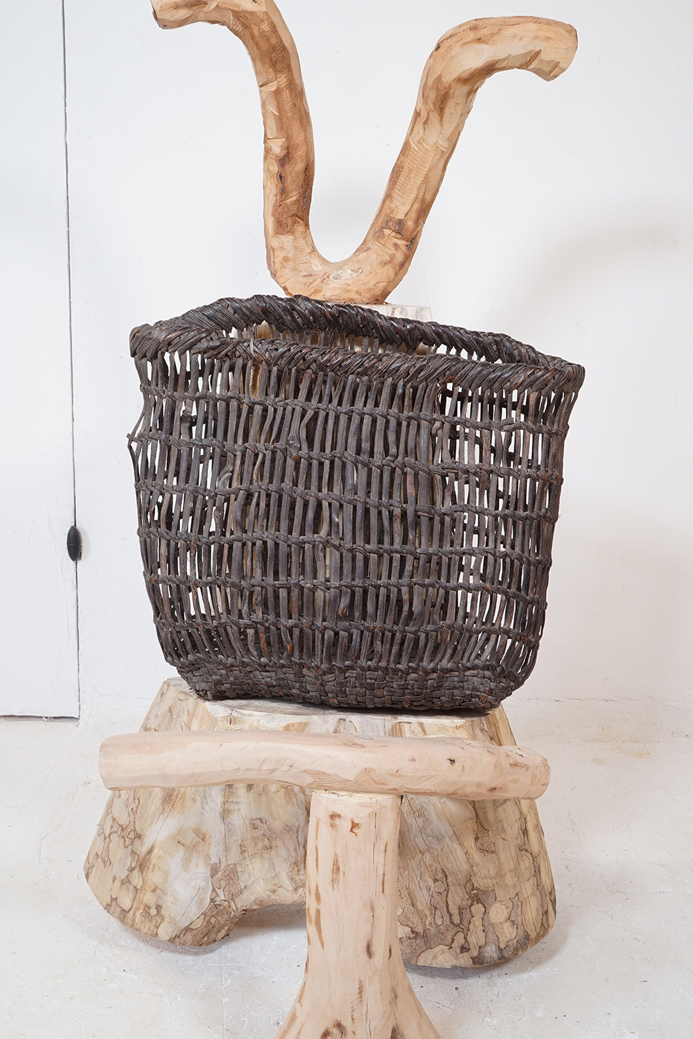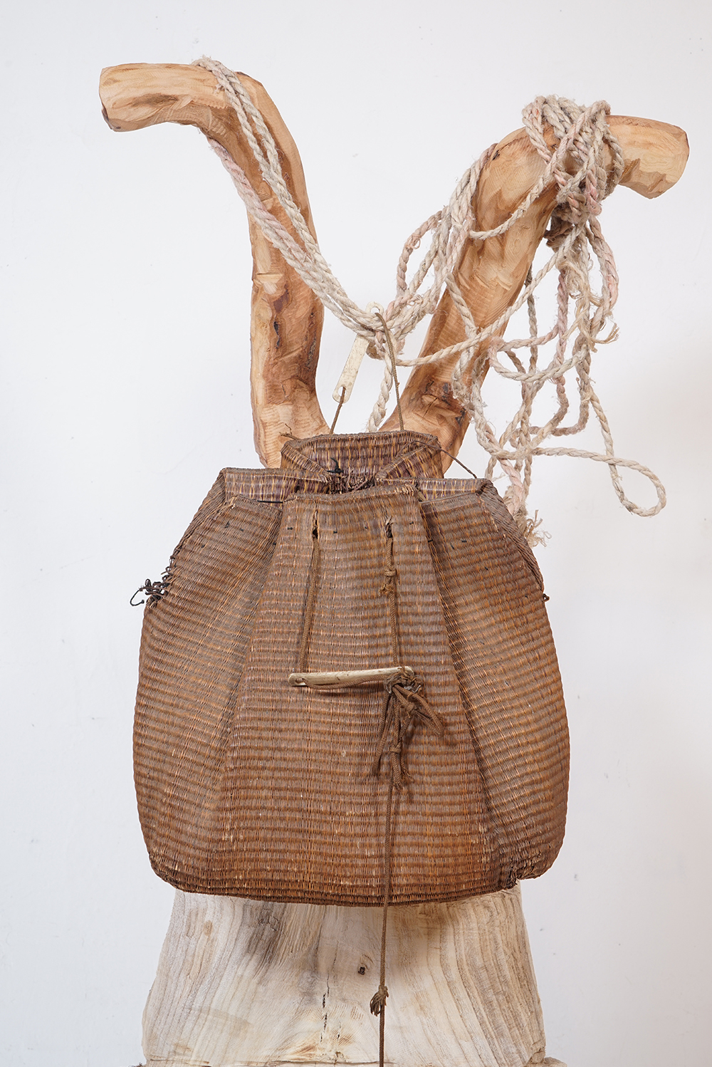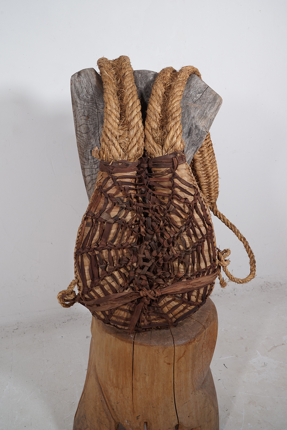 蓑もばんどりもどう見てもライオンキングの様に見え、日本的という表現からは遠い存在に見えてなりません。 私の勝手な想像ですが、民族大移動の時期に、アフリカやオセアニア、インドネシアあたりから、記憶としての文化が運び込まれたり、種子や花粉が飛んでくる様に列島にもたらされたのではと思っております。 展示は古い編み籠なども加え約五十点ほどになります。ご高覧いただければ幸いに存じます。