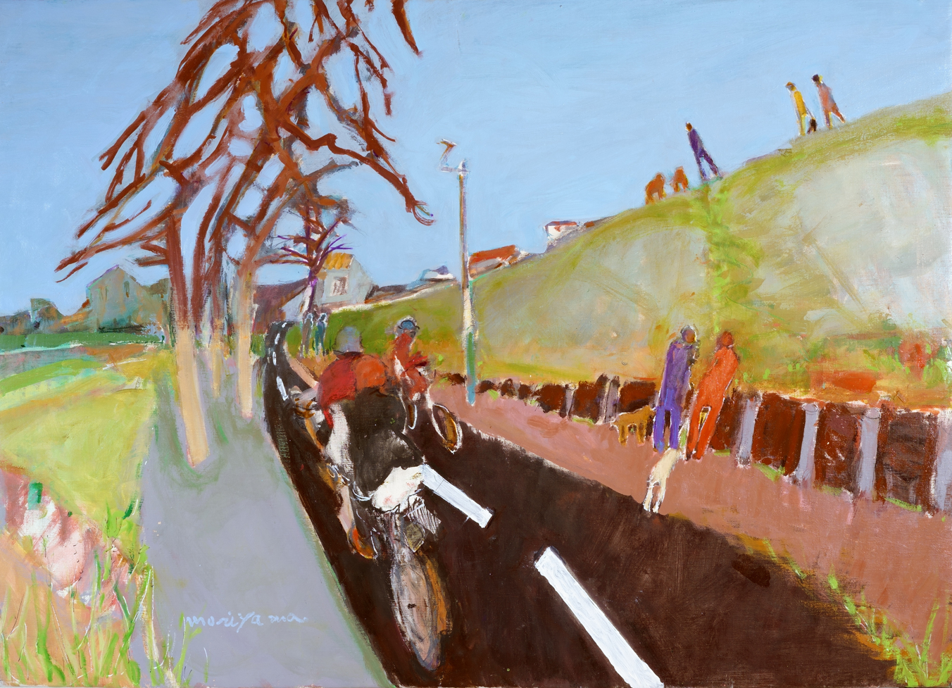 土手と自転車 Bank and Bicycles 油彩 Oil on canvas board 65.3 × 91.2 cm