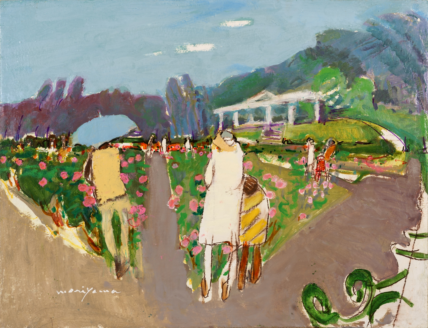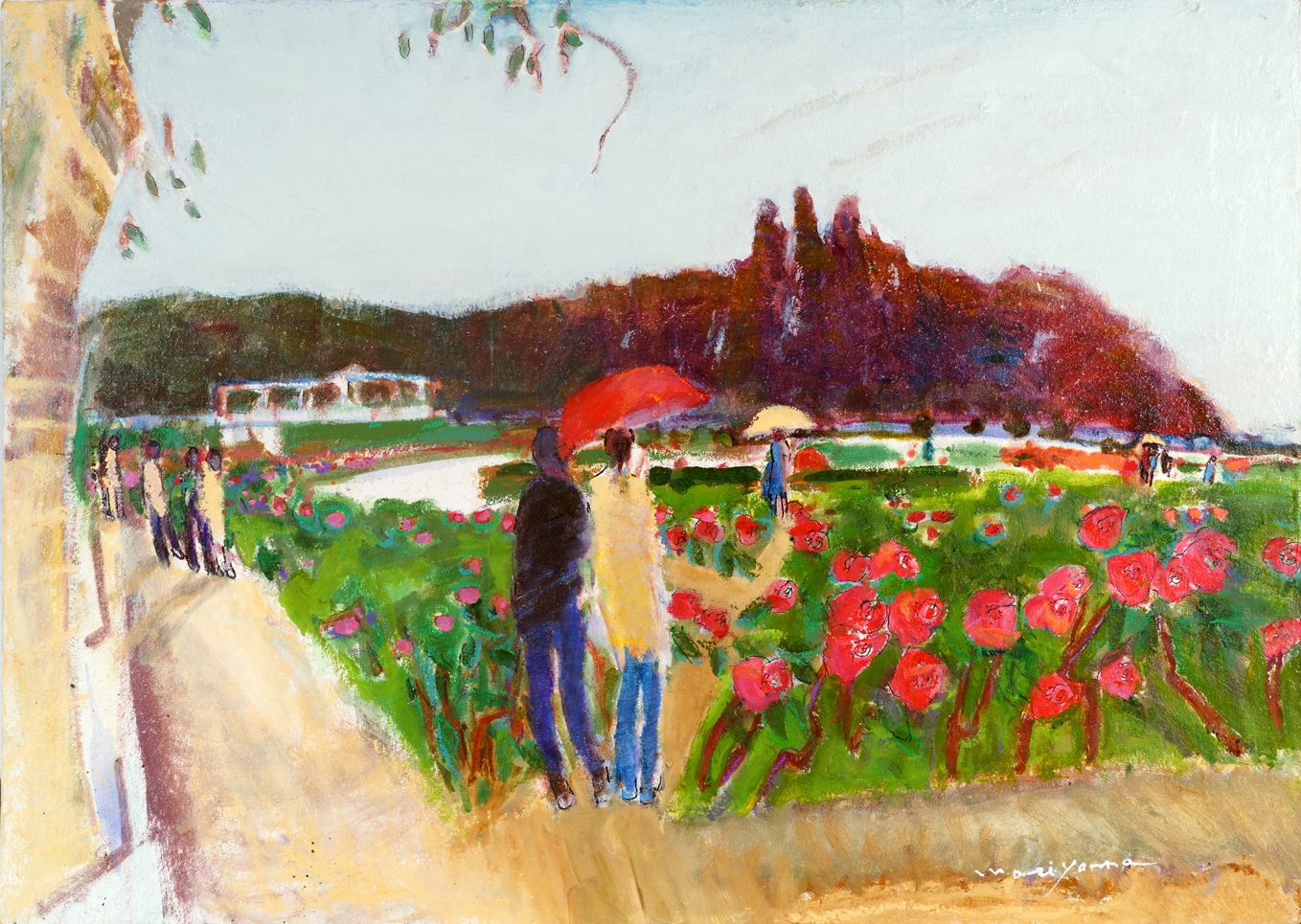花壇と人々 People at Flowerbed 油彩 Oil on canvas board 50.4 × 65.3 cm