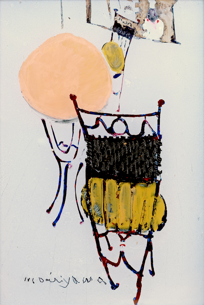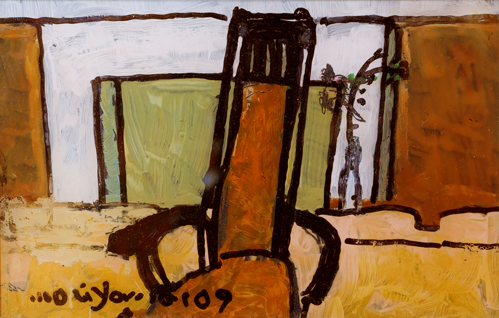 椅子とテーブル Chairs and a Table ガラス絵 Reverse glass painting 14.5 × 9.7 cm