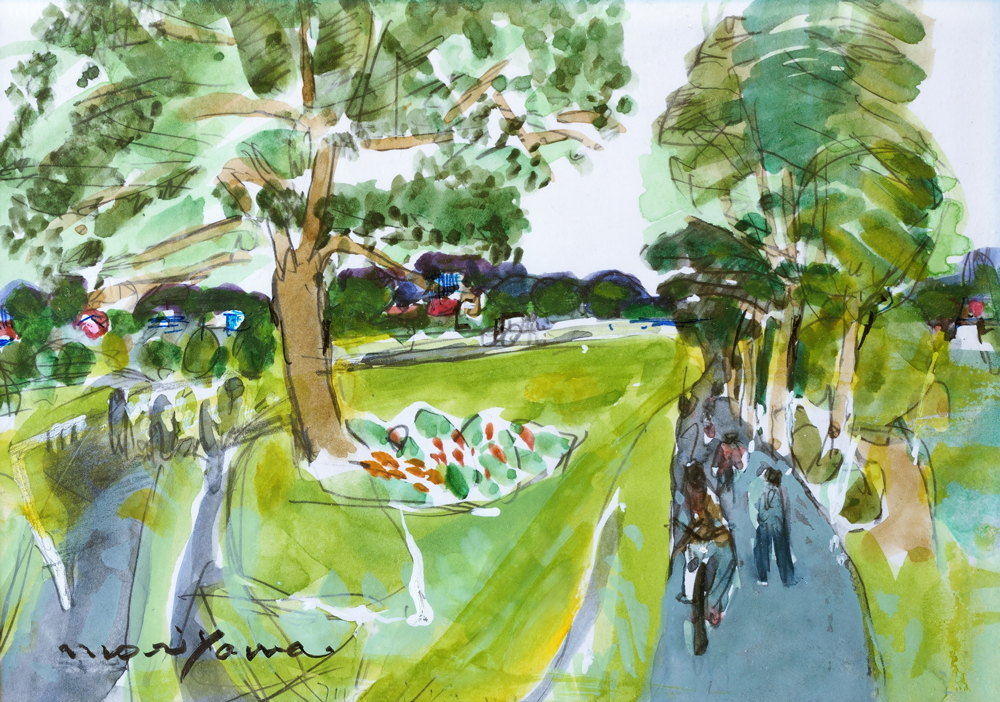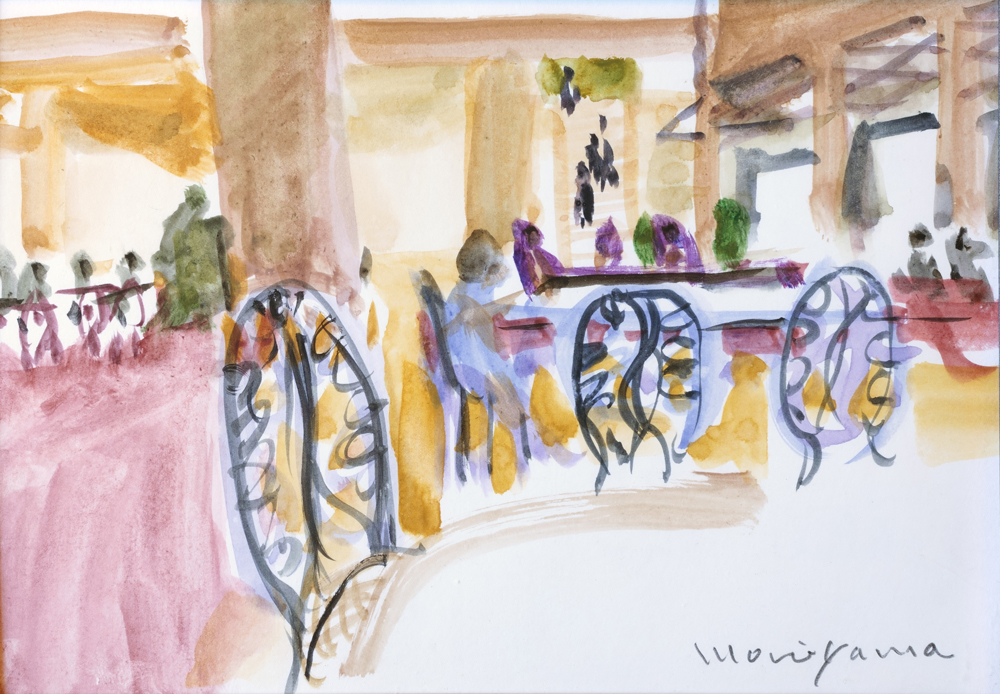 カフェテラス Café Terrace 水彩 Watercolor on paper 11.7 × 16.7 cm