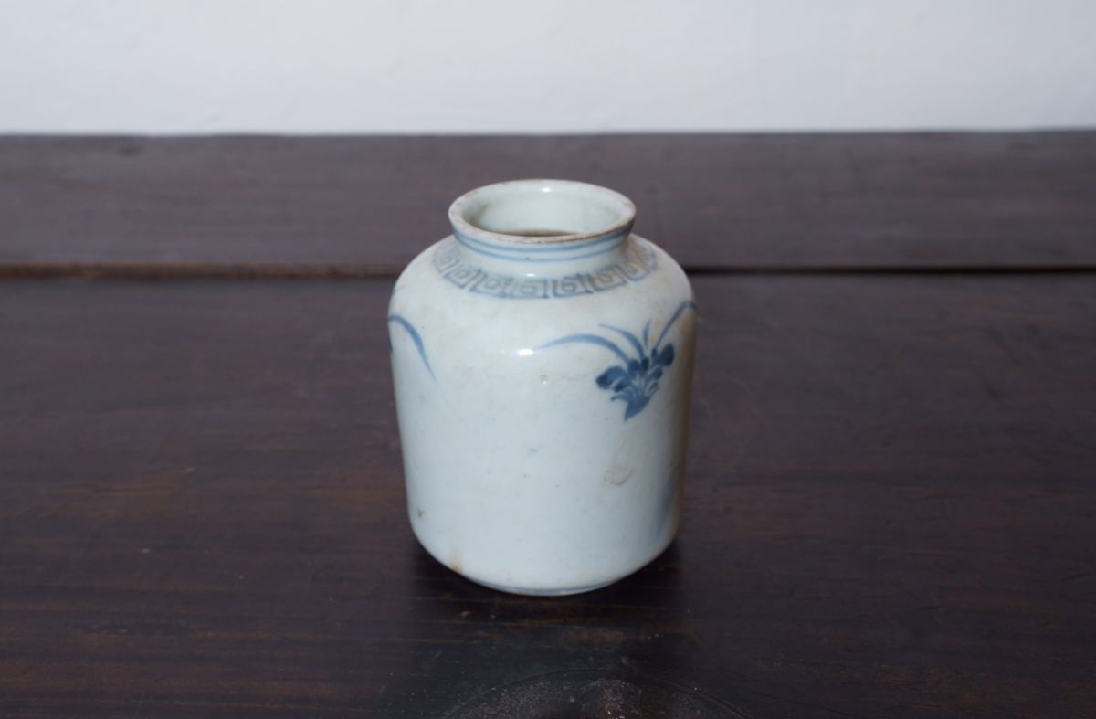 李朝草花文染付小壺  h9cm