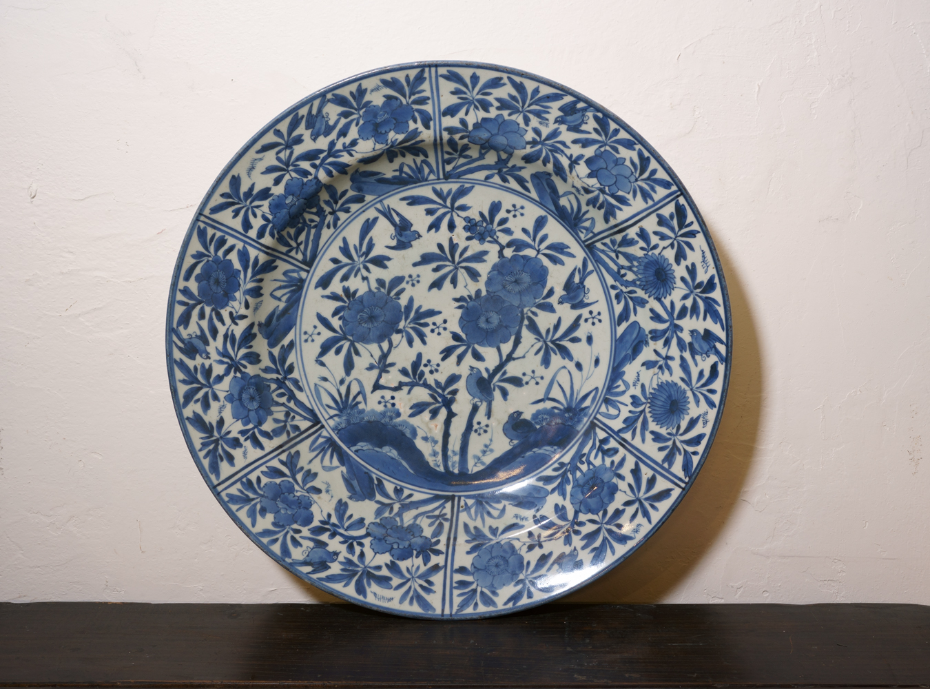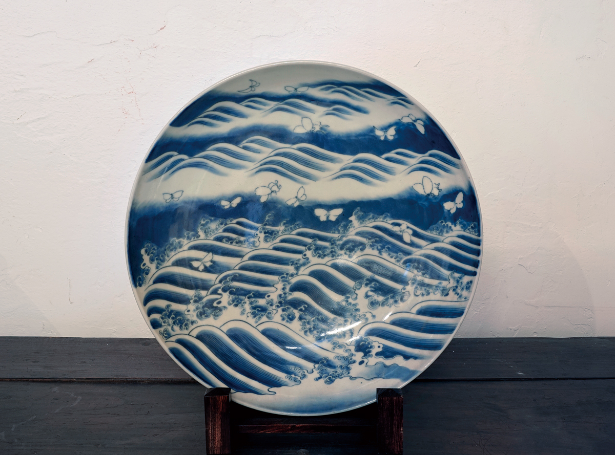 鍋島高台皿 波蝶文様  Nabeshima Blue-and-White Porcelain Charger  φ41cm