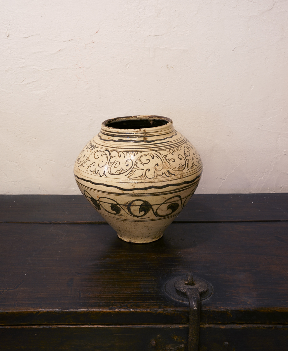 鶏龍山系鉄絵大壺